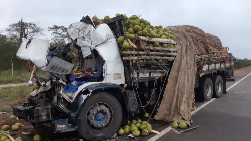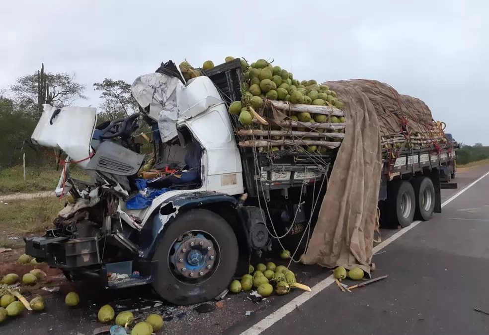 Quatro pessoas morreram após um grave acidente entre um caminhão, carregado de coco, e uma carreta na BR-407, trecho do município de Capim Grosso, no norte da Bahia, na noite de sexta-feira (14). A cabine do caminhão ficou completamente destruída.