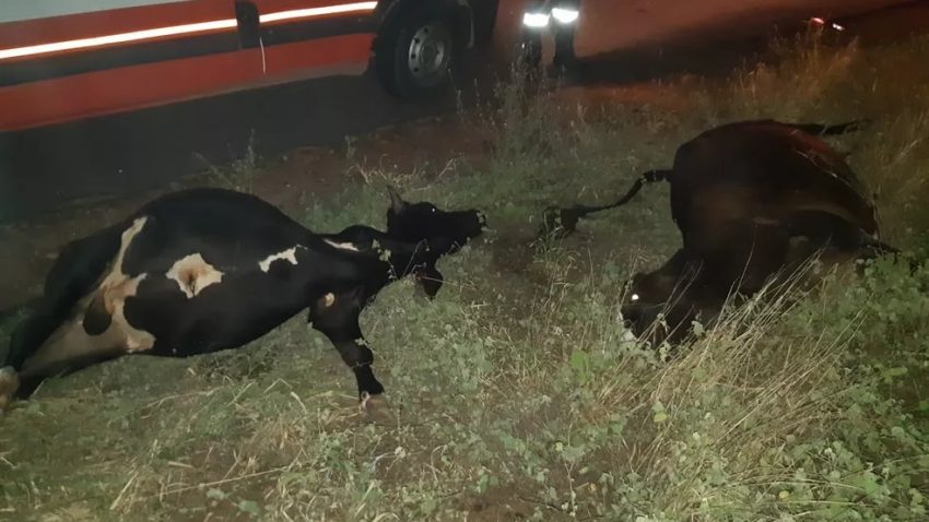 Dois bovinos morreram após serem atropelados pelos veículos durante o acidente. O caso vai ser investigado pela polícia.
