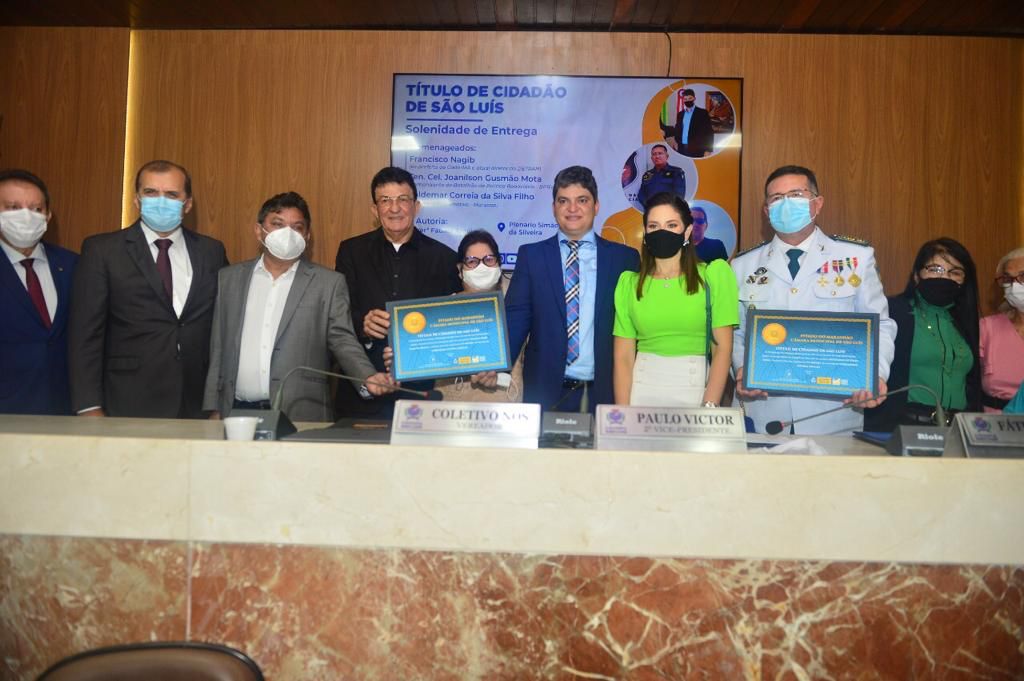 “Agradeço, primeiramente, a Deus, aos meus pais, minha esposa e todos que têm me apoiado durante toda essa minha trajetória. Vim para São Luís para cursar a 8ª série, fazer o ensino médio e faculdade e esta bela cidade me recebeu de braços abertos. Fiz muitos amigos aqui e, atendendo ao convite do governador Flávio Dino para compor sua equipe, agora, moro com minha família aqui nesta cidade. Já me sentia um ludovicense, mas agora sou de direito um cidadão de São Luís, com este título que a Câmara Municipal me concede agora, graças à proposição da amiga vereadora Fátima Araújo. Obrigado a todos, à Câmara e a esta cidade. Sou codoense e também ludovicense. Estou honrado com este título e vou atuar ainda mais para o desenvolvimento desta capital, de Codó e de todo o Maranhão” afirmou Francisco Nagib.