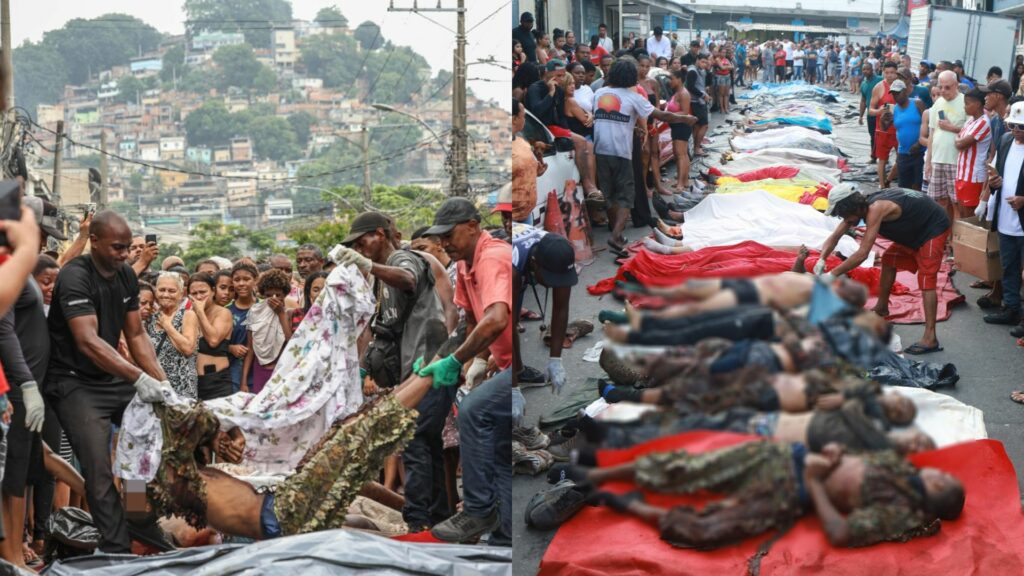 Mais de 60 corpos, de acordo com as autoridades, foram retirados por moradores da área de mata conhecida como Vacaria, na Serra da Misericórdia, e levados para a Praça São Lucas, no Complexo da Penha, durante a madrugada. Curi ressaltou que os mortos estavam vestidos com roupas camufladas, mas que, ao serem levados para a praça, apareceram “apenas de cueca ou short”.