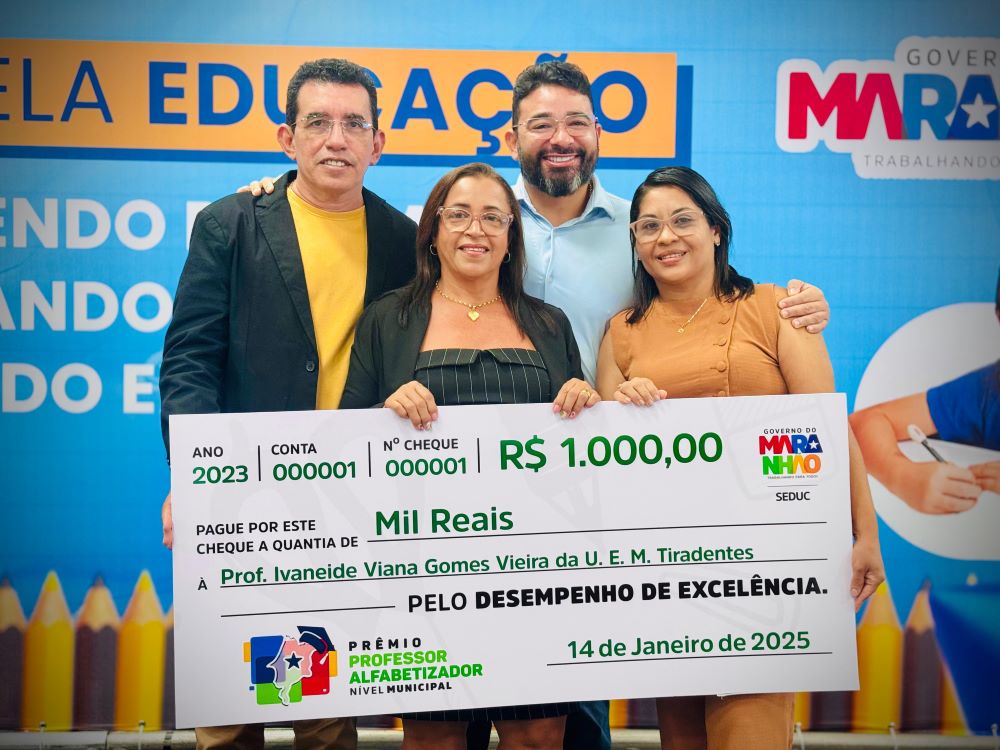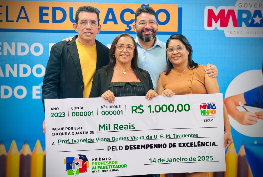 Na ocasião foi concedido o Prêmio Professor Alfabetizador, entregue a Professora Ivaneide Viana Gomes Vieira, da U.E.M Tiradentes, de Peritoró, pelo desempenho de excelência. A premiação foi idealizada para estimular e prestar reconhecimento aos professores alfabetizadores que contribuem com o desenvolvimento da equidade e qualidade social dos sistemas públicos no Maranhão, voltados para a promoção da alfabetização de crianças.