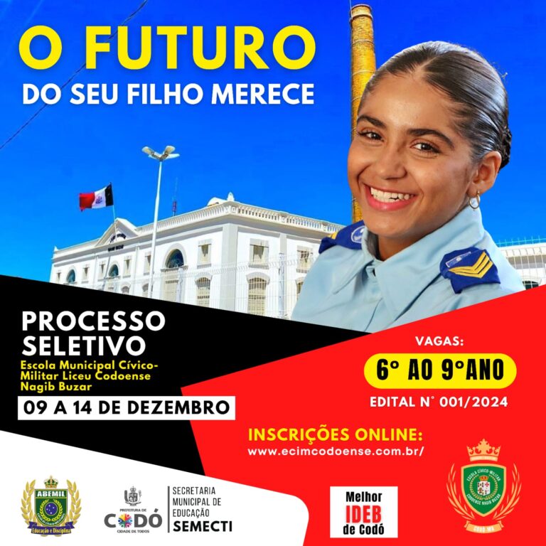 A Escola Cívico-Militar Codoense Nagib Buzar informa que as pré-matrículas para novos alunos do ano letivo de 2025 estarão abertas no período de 09 a 14 de dezembro de 2024.