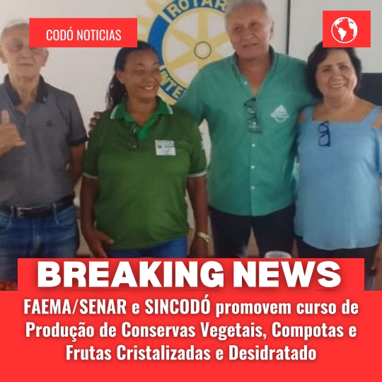 O Sindicato dos Produtores Rurais de Codó (SINCODÓ) juntamente com a Federação de Agricultura e Pecuária do Estado do Maranhão (FAEMA) e o Serviço Nacional de Aprendizagem Rural (SENAR), em parceria com o Rotary Clube de Codó, promoveram um importante e saboroso curso de Produção de Conservas Vegetais, Compotas e Frutos Cristalizados/Desidratados. O curso foi realizado na sede do Rotary Clube, durante três dias e com carga horária de 24 horas.