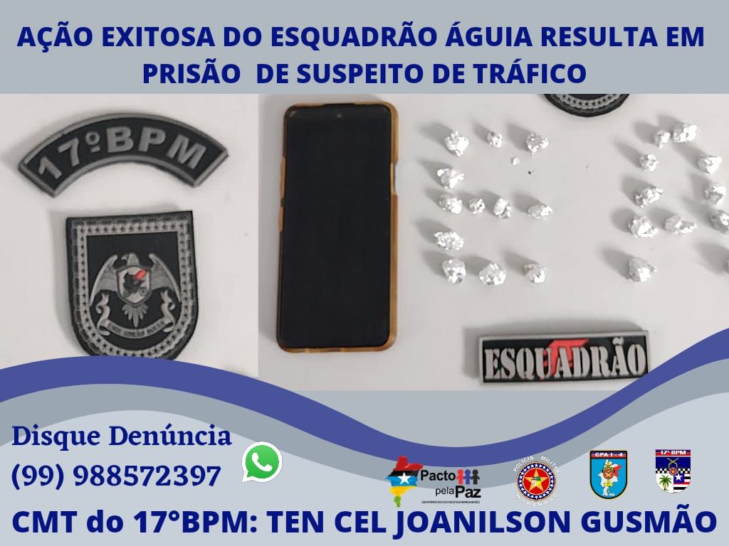 Na última quarta-feira (23) o Esquadrão Águia do 17º BPM efetuou a prisão de um indivíduo suspeito de traficar entorpecentes no bairro Jerusalém.
