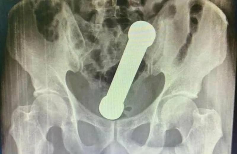 O objeto dentro do homem – um haltere – se encontrava entre o reto e o intestino grosso do paciente. Após o exame, o homem assumiu que teria introduzido o peso de academia no corpo com o objetivo de sentir satisfação sexual.