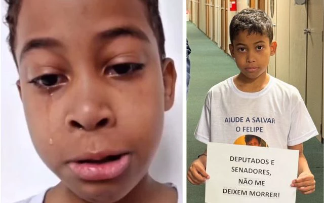Nesta quarta-feira (28), o menino Paulo Felipe, de 12 anos, foi até Brasília pedir ajuda dos parlamentares para conseguir o remédio Ravulizumabe, que custa cerca de R$ 35 mil por dose. Ele tem Síndrome Hemolítico-Urêmica Atípica (SHUa), doença rara que provoca falência dos rins.