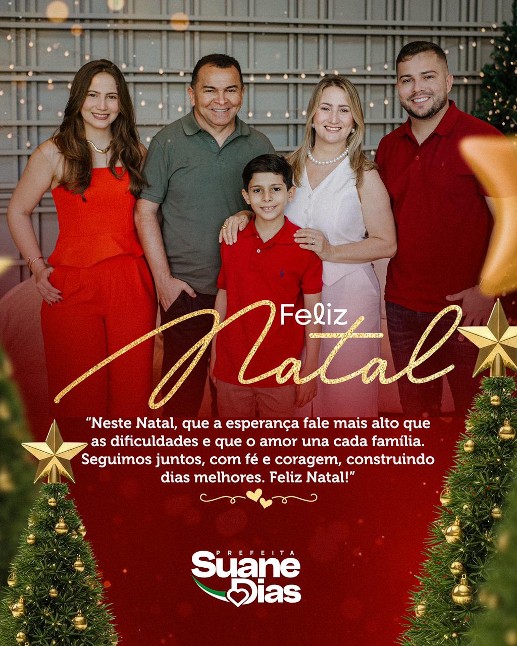 Mensagem de Natal da Prefeita Suane Dias a todos os Goncalvinos A Prefeita Suane Dias deseja a todos os gonçalvinos um Feliz Natal e um Ano Novo próspero e abençoado, repleto de muita saúde, paz e esperança.
