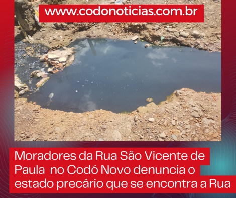 Eh a rua São Vicente de Paula,aqui no Codó novo,tá nessa situação,os moradores daqui de perto NN se aguentam mais ,NN dá de mais de passar direito de moto e ruim a pé tbm ,e além de tudo é um fedor imenso,que ninguém suporta mais por conta da água,que vem diretamente do lixão