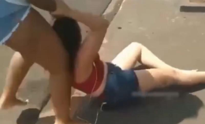 De acordo com o vídeo, a mulher chega ao estabelecimento comercial, puxa a outra pelos cabelos para fora do local e inicia as agressões. Em meio à confusão, há troca de empurrões e gritos. Em determinado momento, uma bicicleta é arremessada durante a briga.