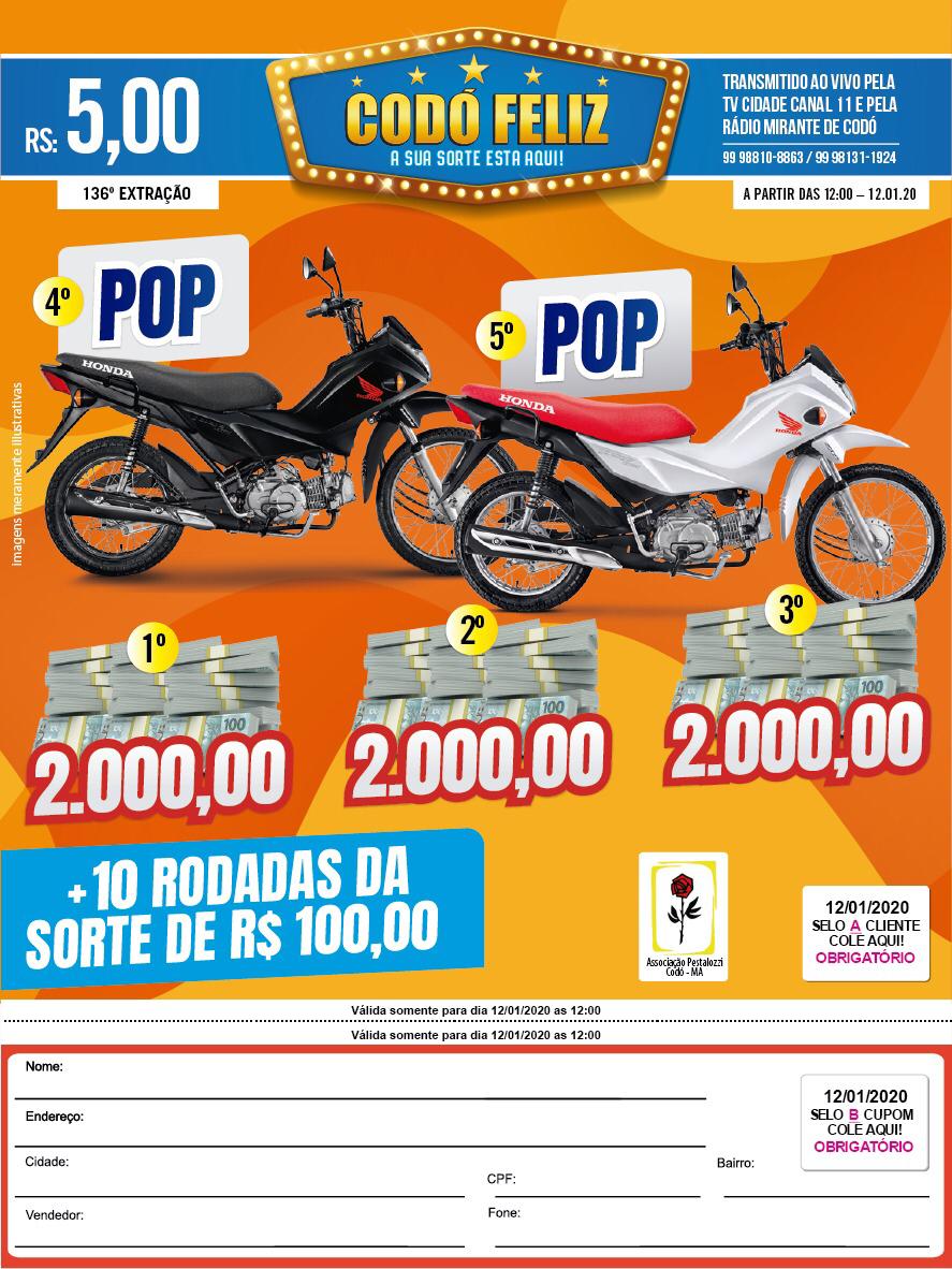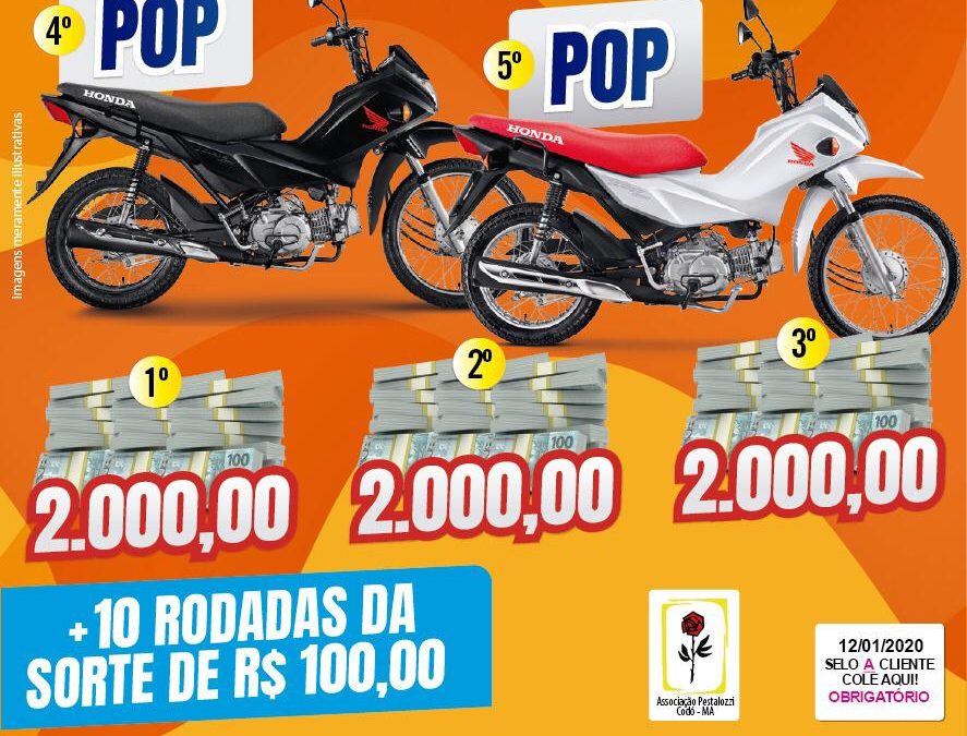 Neste final de semana o Codo Feliz vai sortear duas lindas Motos Pops e mais sete mil reais em dinheiro
