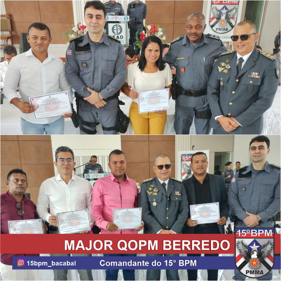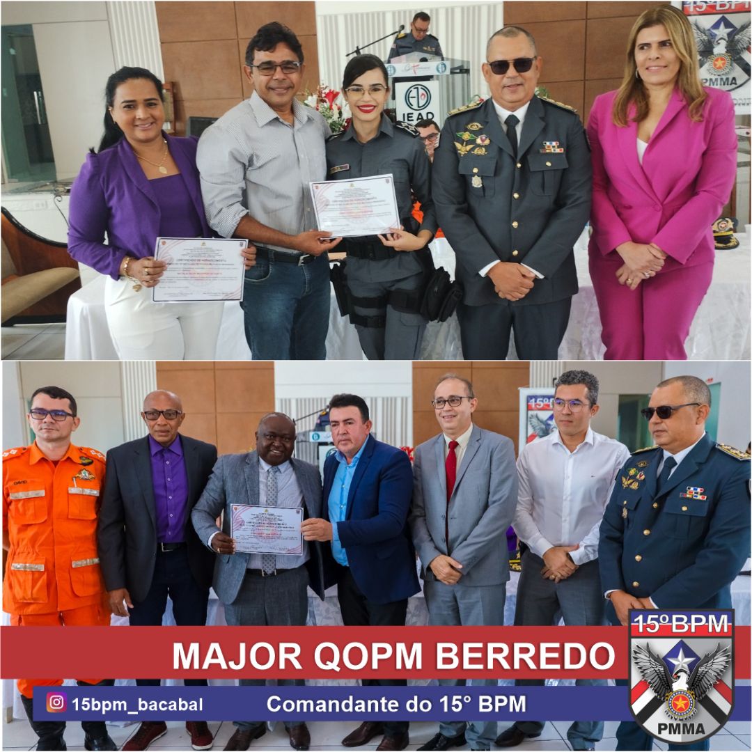 O prefeito Edvan Brandão foi um dos homenageados no evento. “Só tenho a agradecer o convite da Polícia Militar de Bacabal para prestigiar essa importante solenidade de condecoração, promoção e homenagens aos bravos homens e mulheres que prestam um serviço essencial em nossa cidade. Fico muito agradecido ao Coronel Túlio e ao Major Berrêdo, por receber essa honraria de amigo do 15º BPM. Somos e continuaremos sendo parceiros da nossa Polícia Militar”.