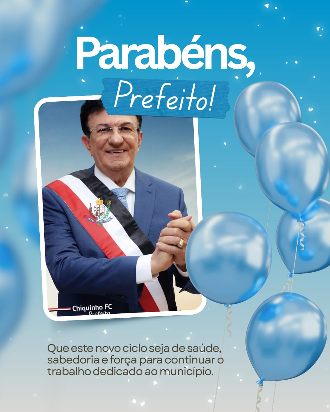 _*PARABÉNS* ao *excelentíssimo Senhor Prefeito de Codó*, o *Sr. Francisco Carlos de Oliveira* (Chiquinho FC); que Deus lhe conceda sabedoria e forças renovada para administrar o município, servindo ao bem comum, promovendo a justiça, a paz e a ordem. Oramos para que a benção do SENHOR esteja sobre sua vida, família e administração._