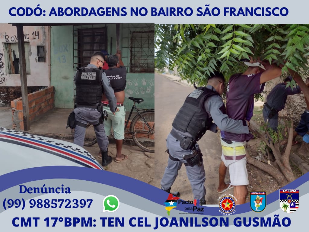 O Comandante do 17°BPM, Tenente Coronel Joanilson, tem mobilizado o efetivo da Unidade para realizar ações que visam prevenir práticas de crimes contra pessoas nas cidades de Codó e Timbiras.