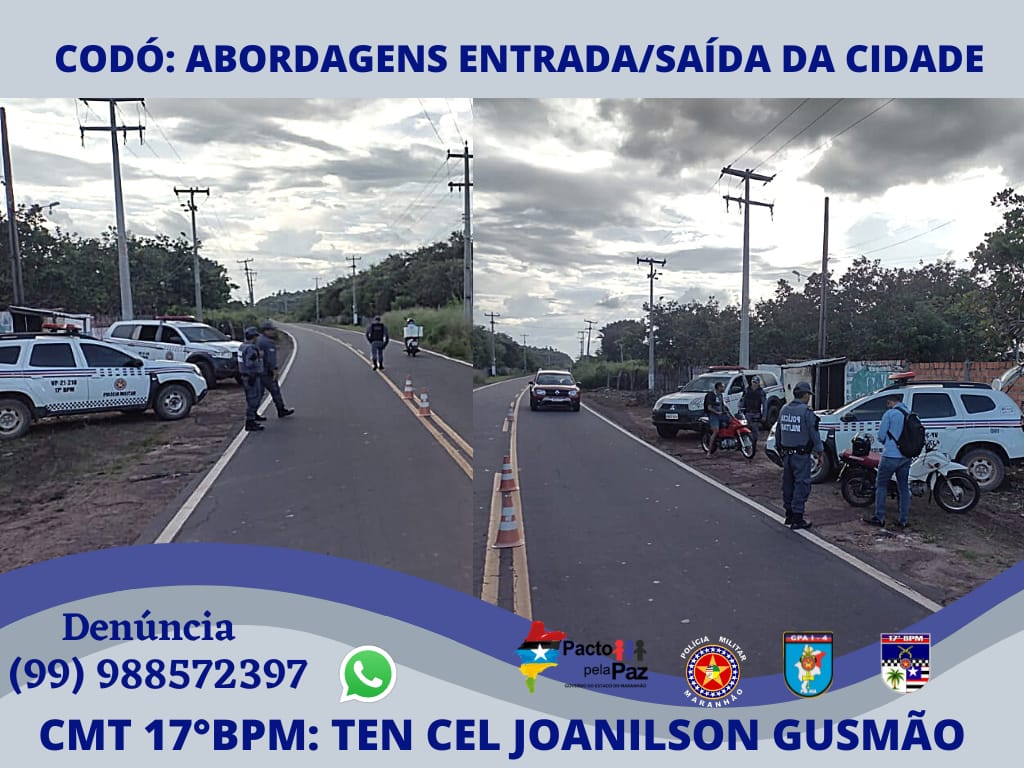 Cumprindo as diretrizes operacionais do alto comando da PMMA, policiais militares de Codó e Timbiras, logo nas primeiras horas da manhã desta segunda, estavam com as viaturas do 17°BPM empregadas na “Operação Codó Segura”, com as viaturas posicionadas em pontos estratégicos para que pudessem inibir as ações de criminosos que transitam em vias de grande circulação de pedestres, ciclistas e motociclistas.