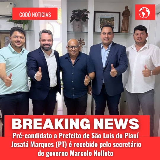 O pré-candidato a prefeito da cidade de São Luis do Piauí Josafá Marques (PT) acompanhado do deputado estadual Georgiano Neto (MDB) e dos vereadores Diego Leal (PT) e Francildo Bahia, estiveram reunidos nesta quarta-feira (24) com Marcelo Nolleto, secretário de estado do governo do Piauí.