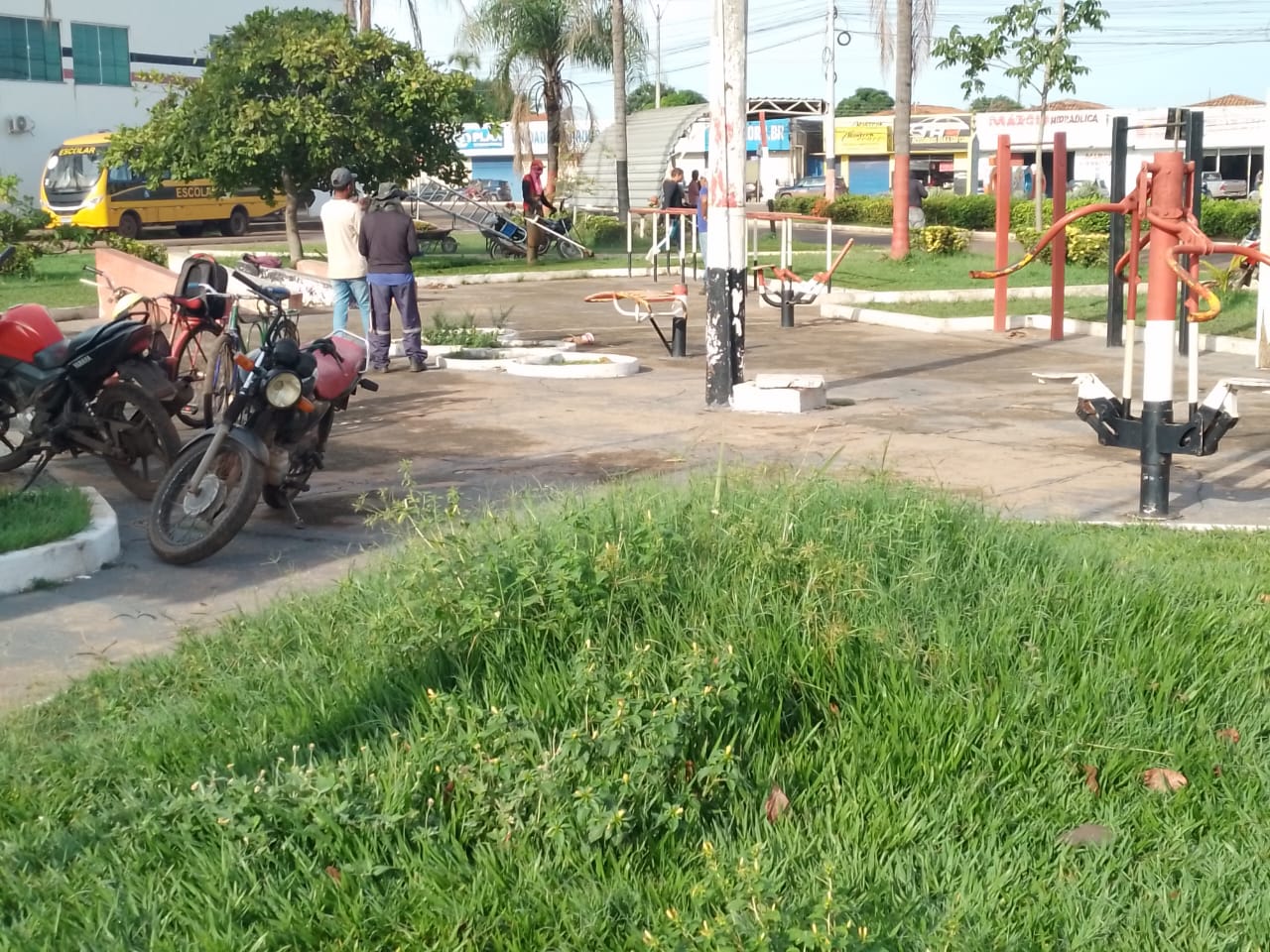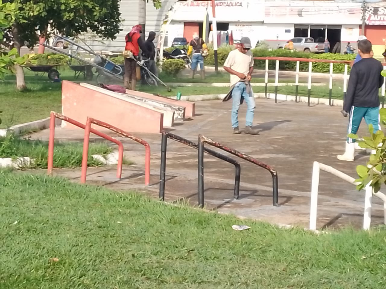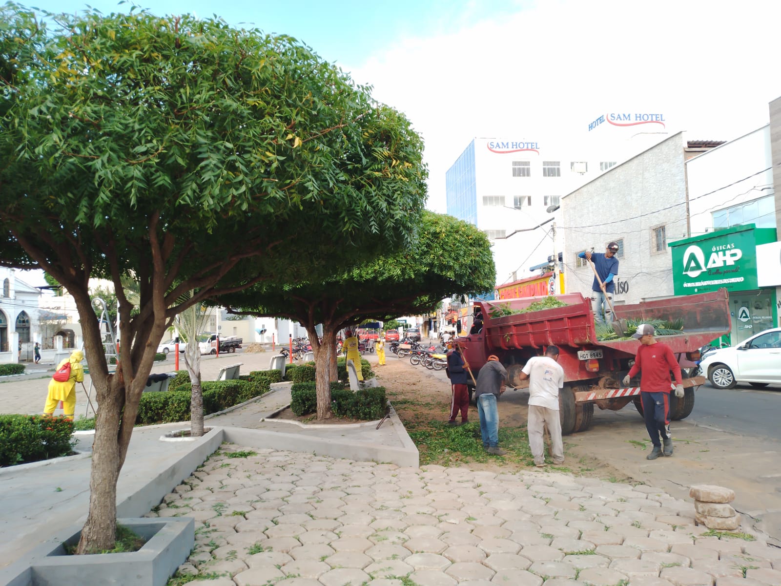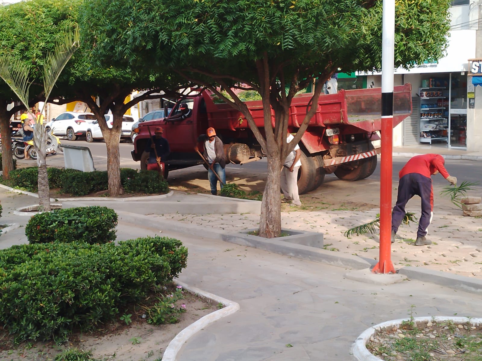 Na manhã desta quarta-feira, 18 de janeiro, as equipes realizararam capina, roçagem e coleta de lixo e outros materiais no centro.