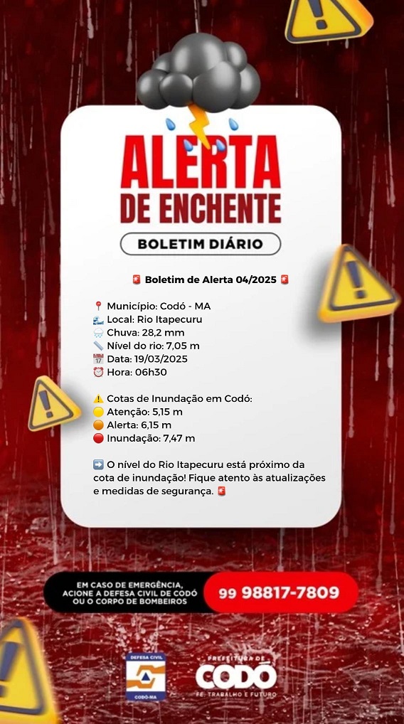 ⚠️ Cotas de Inundação em Codó: